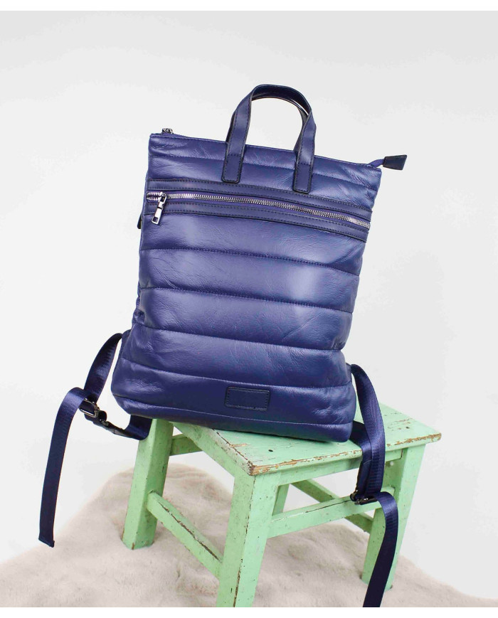 Backpack with cushioned texture and adjustable nylon handles. Contains multiple pockets for effective storage.