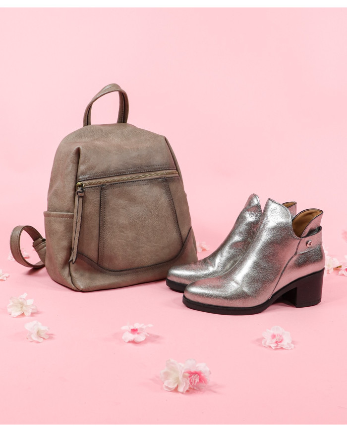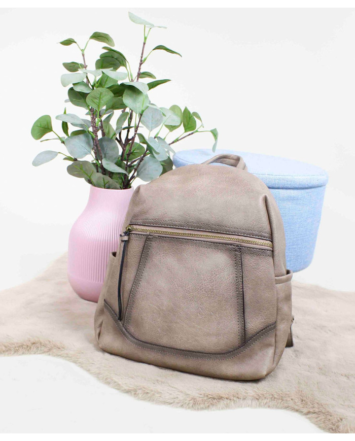 Ladies Taupe backpack with Main Opening Back