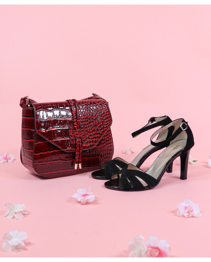 Lacquered case with texture and metallic details. Inside contains a zip pocket.