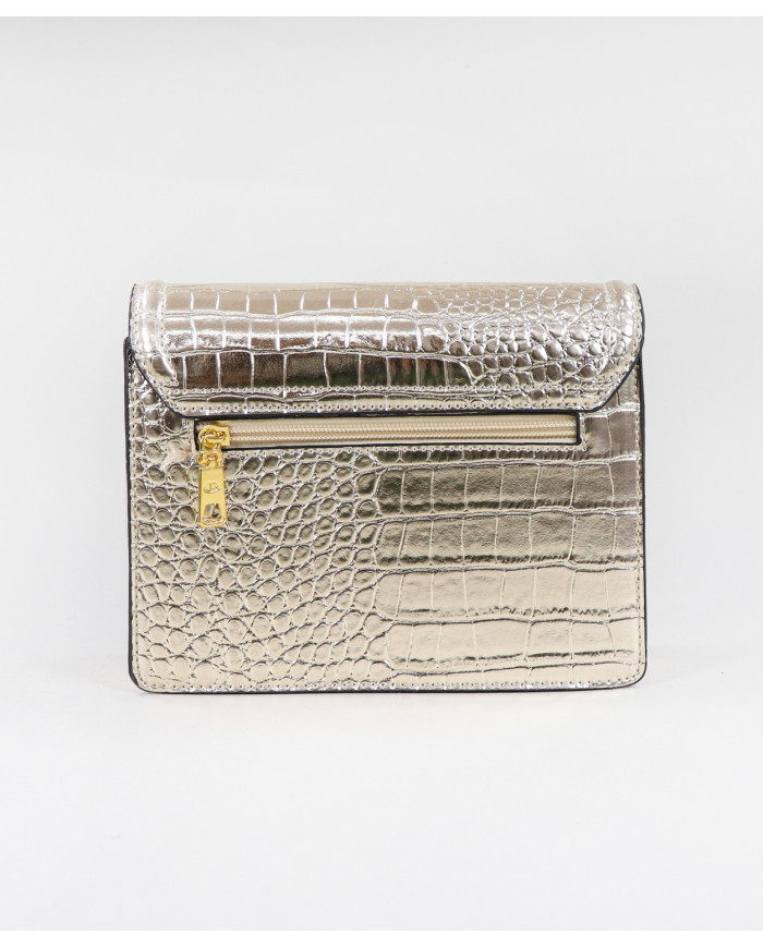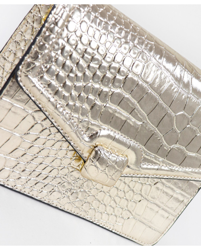 Case with metallic finish. The handle is adjustable to wear shoulder or shoulder strap. With small inner pocket.