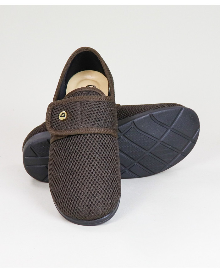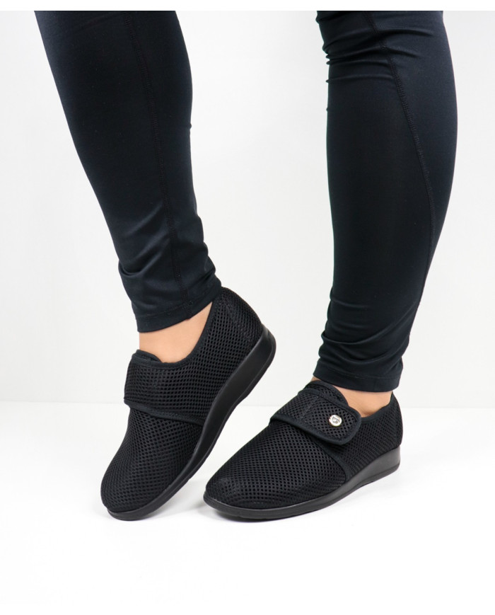 These orthopaedic shoes have a wide opening, are quite practical to wear even for people with reduced mobility and/or mobility.