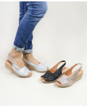 Sandals in wedge Ginova with strip decorated for those who enjoy walking with comfort.