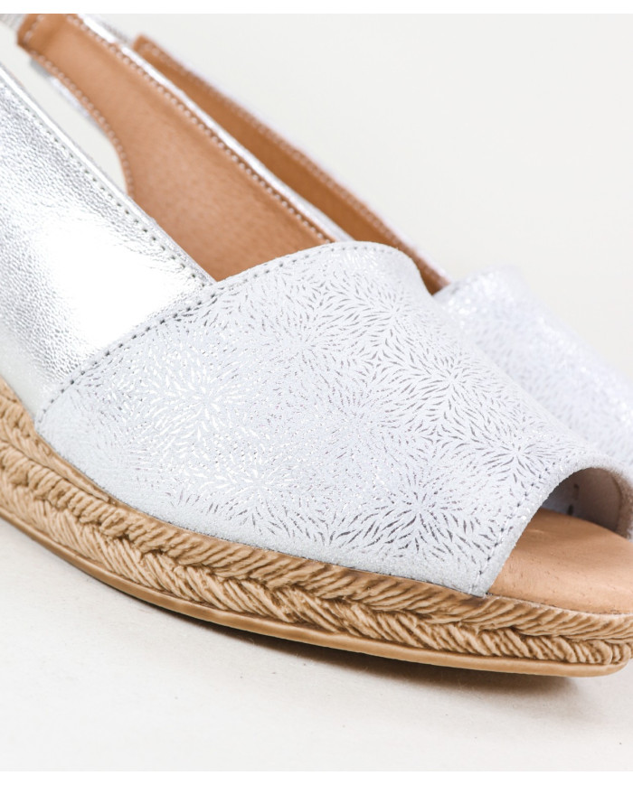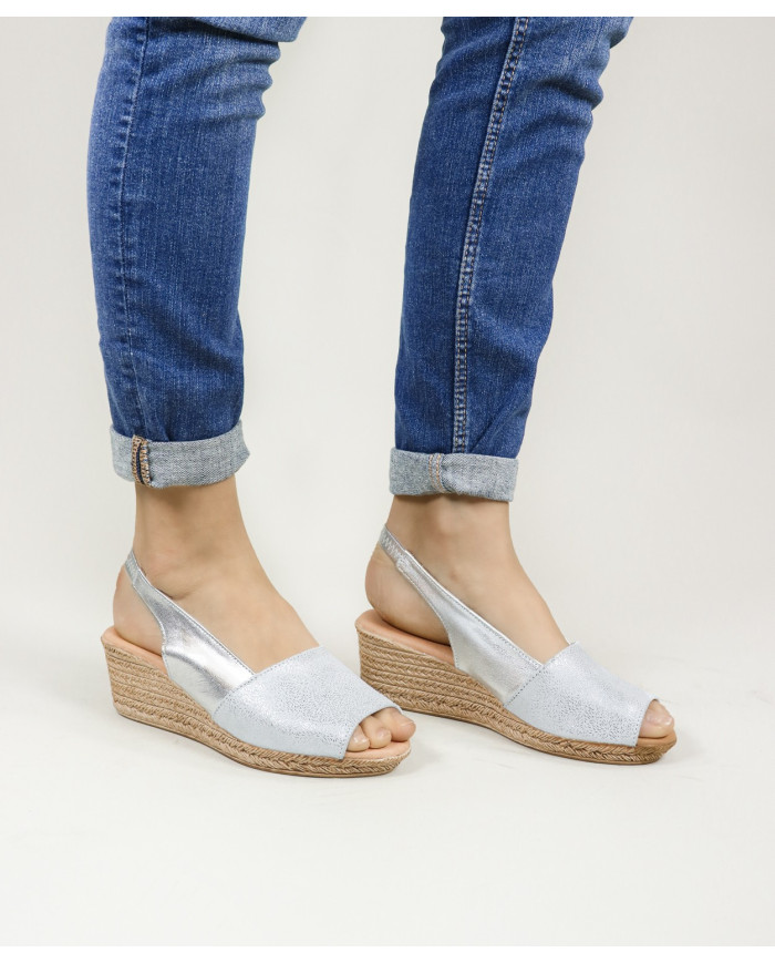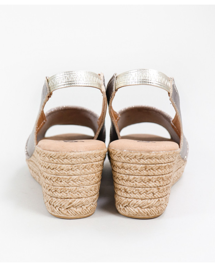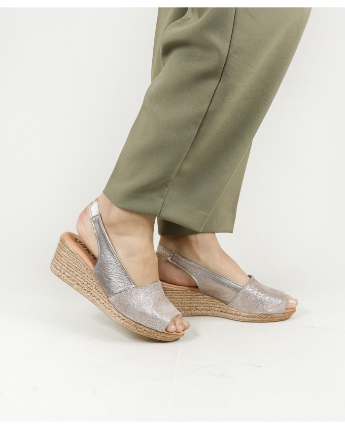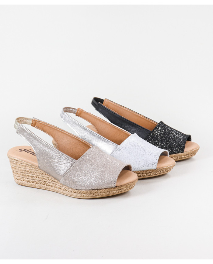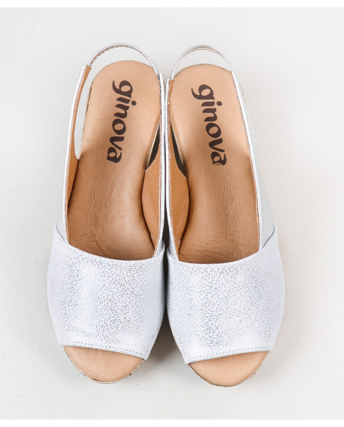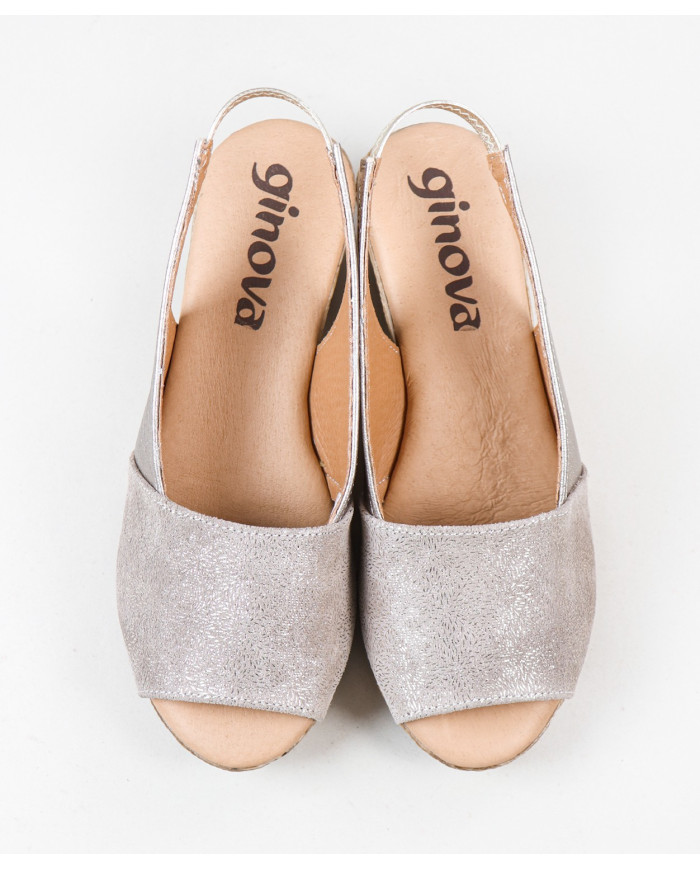 Sandals in wedge Ginova with strip decorated for those who enjoy walking with comfort.