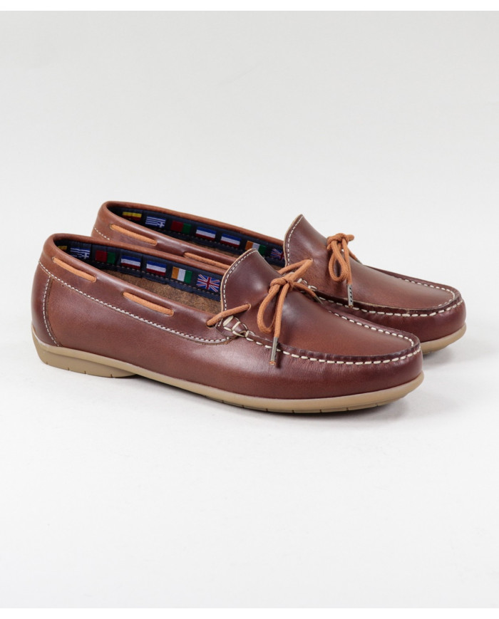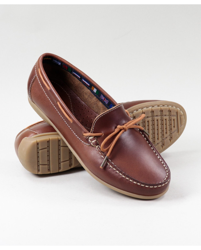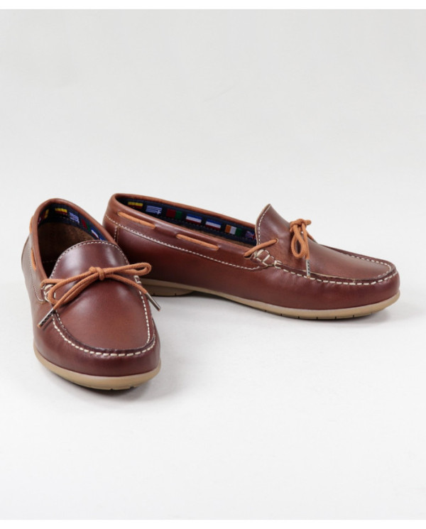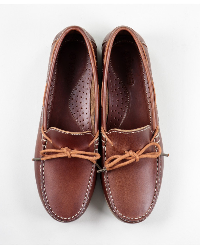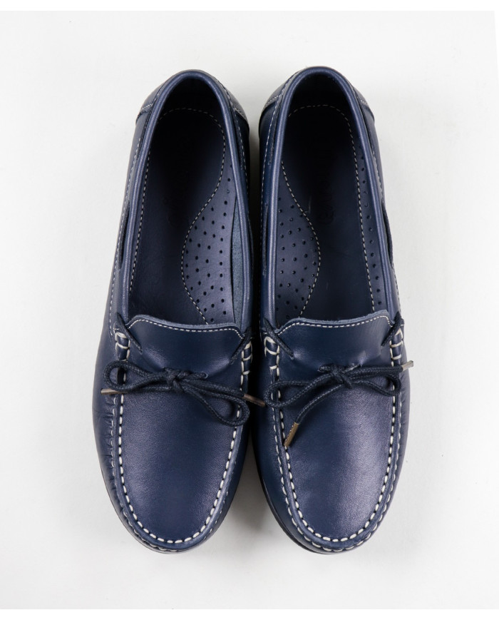 Women's Moccasins with drawstring in front. This footwear has the malleable skin, a simple model with padded skin insole. Available in blue and brown colors.