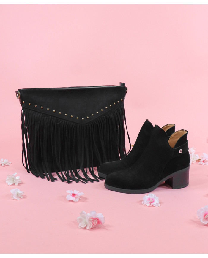 Caso de dama con flecos. Práctico y espacioso, contiene dentro de un bolsillo con cremallera