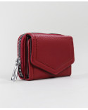 Cartera con textura. Con varias particiones para tarjetas y cremalleras.
