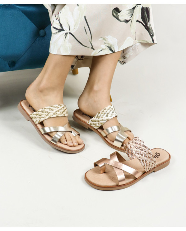 Flip-flops en el dedo con tira decorada más grande. Elige este modelo y mantén tu pie fresco para esta estación.