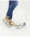 Zapatos de mujer con acabado metálico. Este calzado proporciona comodidad en su piso diario. Un modelo simple con plantilla acolchada.