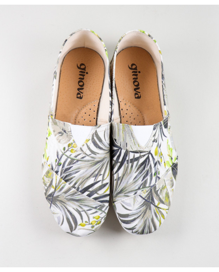 Alpercatas de senhora Ginova às flores. Este calçado adaptável ao pé, proporciona-te conforto no teu dia a dia. São moldáveis e a palmilha é toda em pele. Disponível nas cores vermelho e azul.