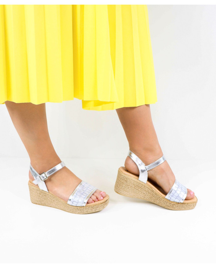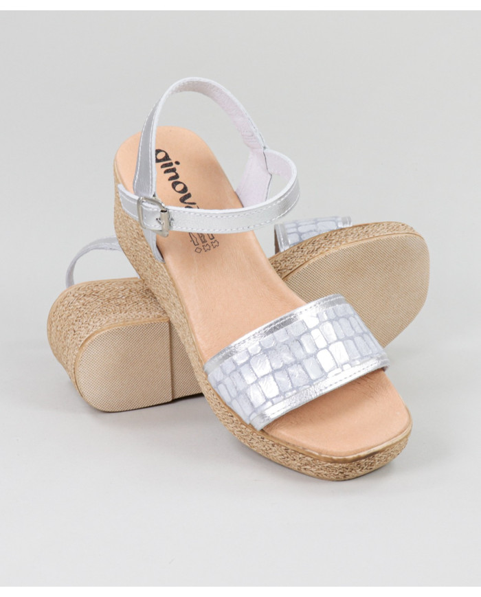 Sandálias de Senhora Ginova com pele gravada. Para quem não dispensa o salto e o conforto juntos, acabamento em ponta quadrada e palmilhas de pele almofadada.