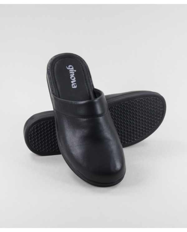 A palmilha é anatómica, toda ela é em pele e com o molde ergonómico do pé. Estes chinelos são lisos com uma costura decorativa que lhes oferece um toque mais elaborado. São adequados para pessoas com pés sensíveis ou joanetes, pois não têm costuras na zona na frente. Para quem necessita de caminhar muito no seu dia de trabalho este chinelo é ótimo e é muito fácil de limpar.