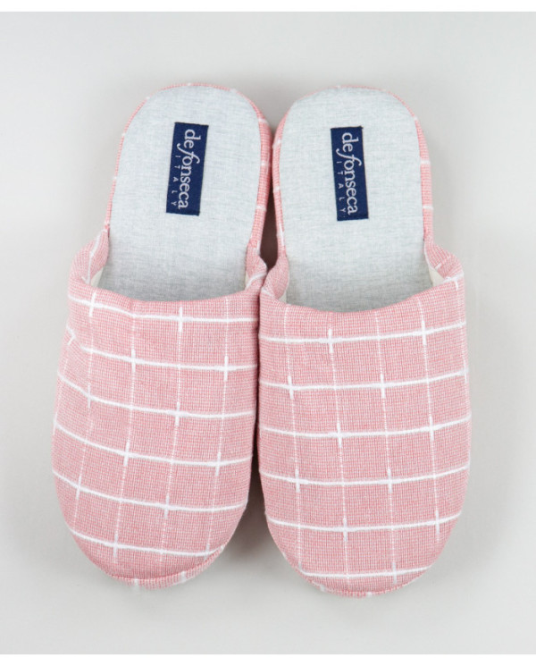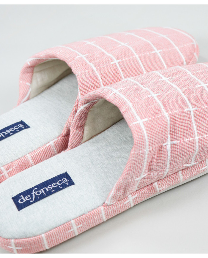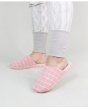 Chinelos de quarto de mulher rosa aos quadrados. Um modelo que te garante comodidade, são o aliado perfeito para andar por casa.