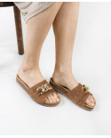 Chinelos de senhora Ginova com sola de cunha. Não dispensas o salto e conforto juntos? Este modelo é ideal para ti! Com palmilha anatómica altamente confortável com a forma do pé. A sola é em cortiça com a parte inferior em borracha, a forma desta sola proporciona estabilidade, garantindo um caminhar seguro. São todas fabricadas numa pele muito suave e maleável.