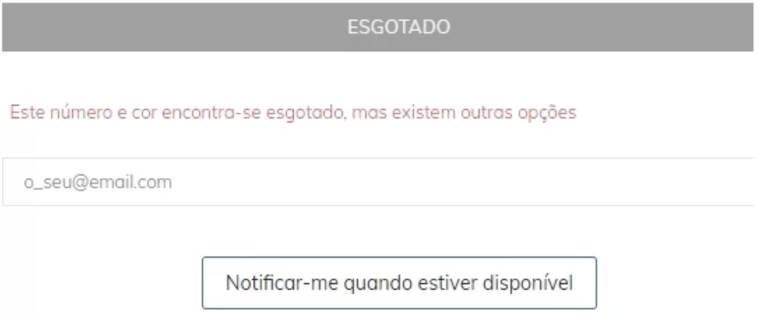 Preenche o campo do email e clica em "Notificar-me quando estiver disponível" para receberes um email assim que houver reposição do artigo.
