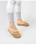 O seu interior e palmilha são revestidos com pelo suave e quente para proporcionar uma temperatura confortável para pé, a sola é em borracha e impede que se sinta o frio do chão, também impede que escorregue, tornando este calçado seguro. São muito fáceis de calçar e muito leves.