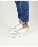 Estilo desportivo casual, fabricado com peças de tecido e pele combinado com leveza, respirabilidade e flexibilidade. Adaptado ao conforto com material macio. para se adaptar aos seus passos.