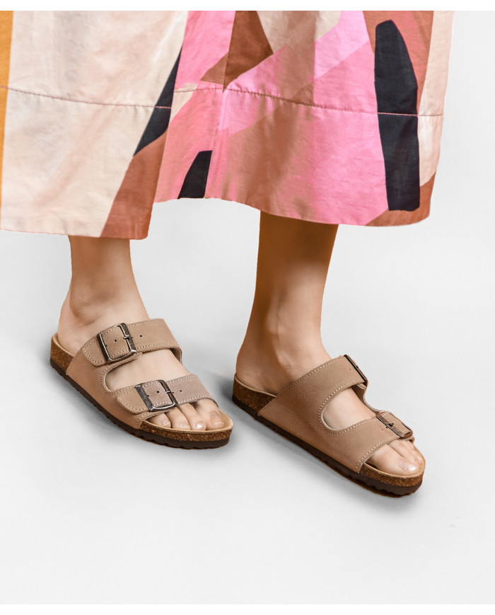 Este modelo é ideal para ti! Com palmilha anatómica altamente confortável com a forma do pé. A sola é em cortiça com a parte inferior em borracha, a forma desta sola proporciona estabilidade, garantindo um caminhar seguro. São todas fabricadas numa pele muito suave e maleável.