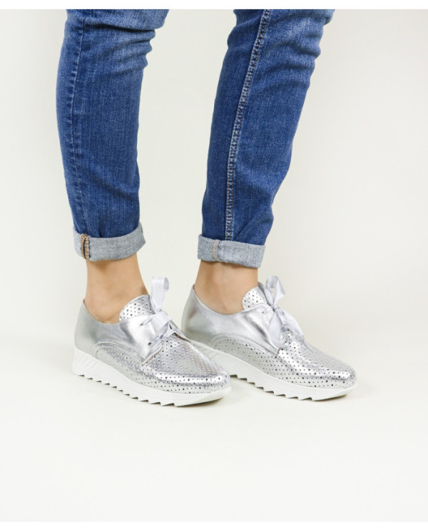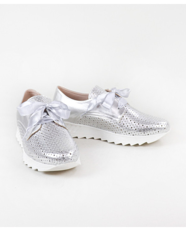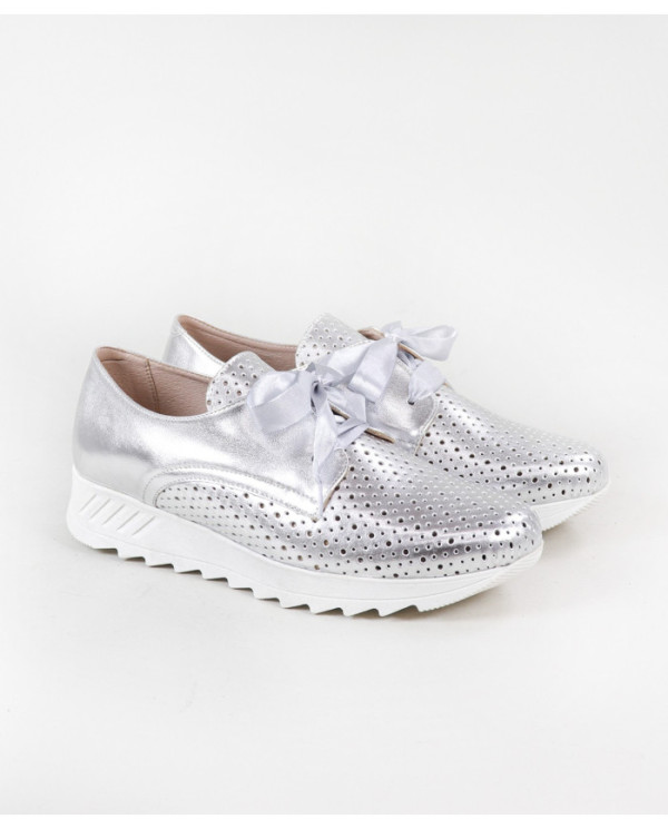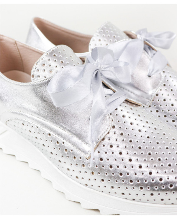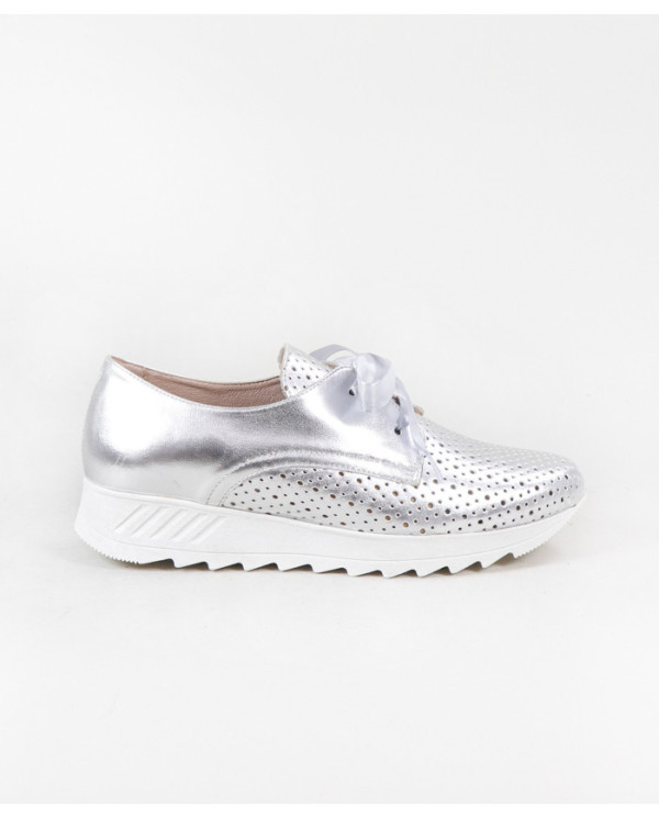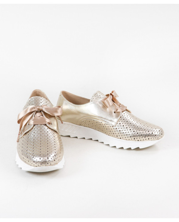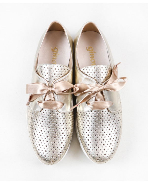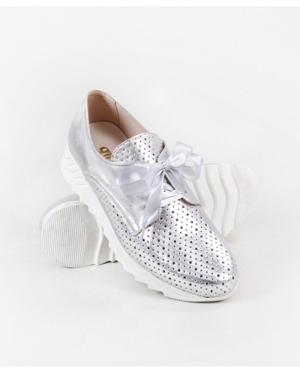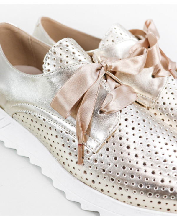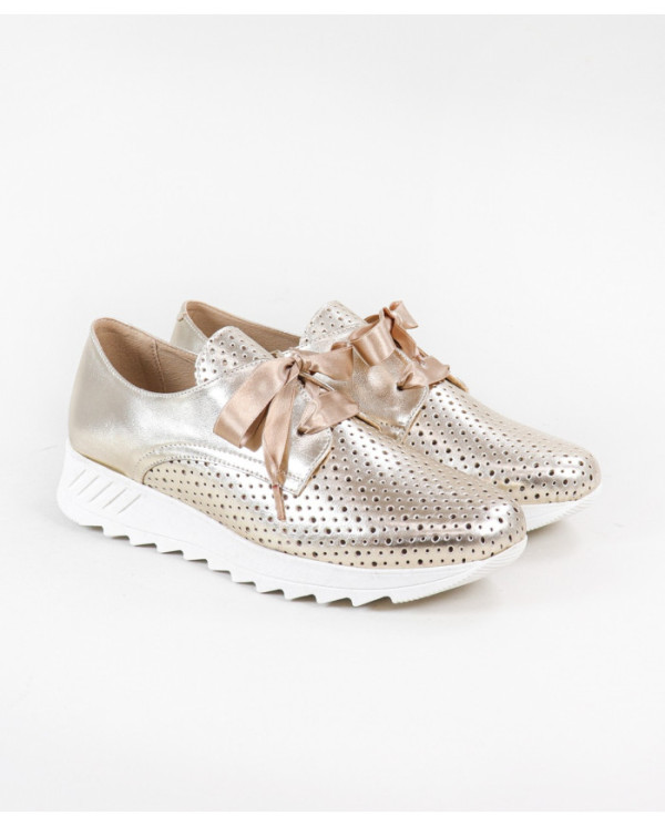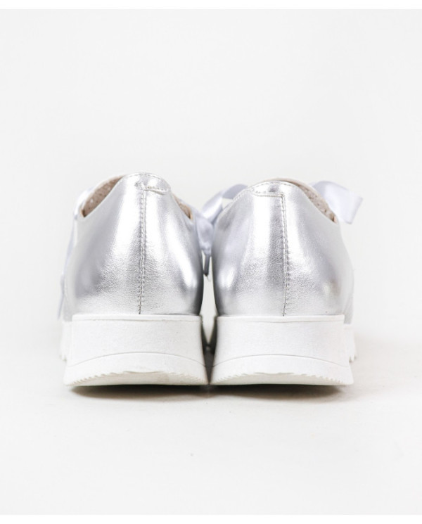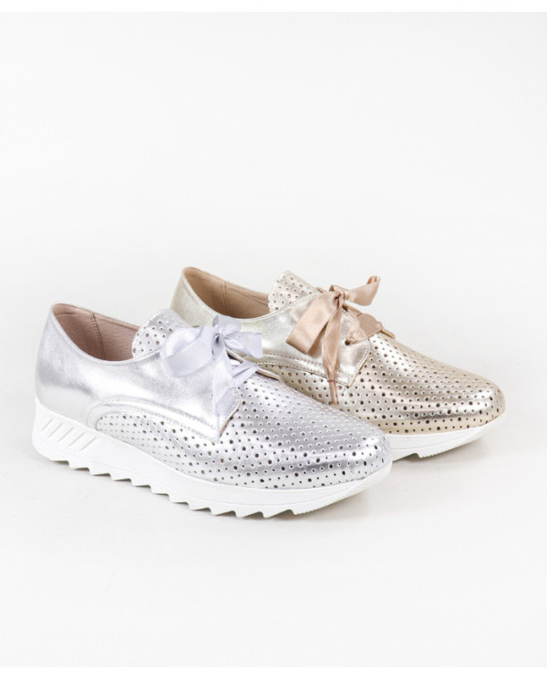 Sapatilhas de Mulher com acabamento metalizado. Este calçado proporciona conforto no seu andar no dia a dia. Um modelo simples e com palmilha em pele almofadada.