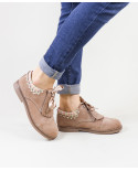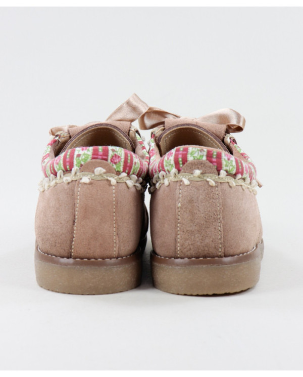 Sapatos baixos de pele carneira com franjas e laço de cetim. O tecido na parte de trás torna este modelo adorável e difícil de resistir.