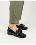 Sapatos com laço decorativo. Um modelo que se tem tornado bastante usual nos dias de hoje.
