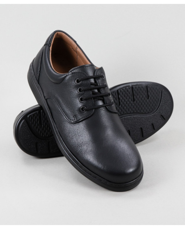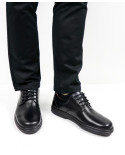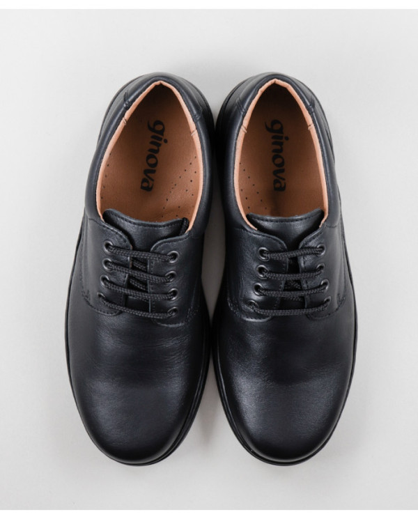 Sapatos de Homem Ginova com palmilha em pele almofadada, para um conforto único. Este tipo de calçado é cómodo e fácil de calçar. Disponível na cor preto.