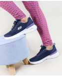 Sapatilhas Skechers New Heighs. Enfrenta o dia com estilo e conforto, modelo com atacadores, parte superior em malha especialmente concebida com camadas de pele sintética.