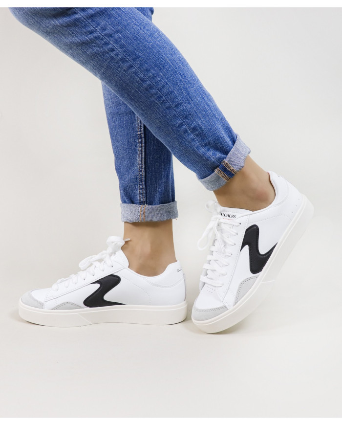 Sapatilhas Skechers Slick Talk. Modelo de estilo clássico, com atacadores, parte superior em duraleather com revestimentos em camurça e palmilha almofadada Cooled Memory Foam